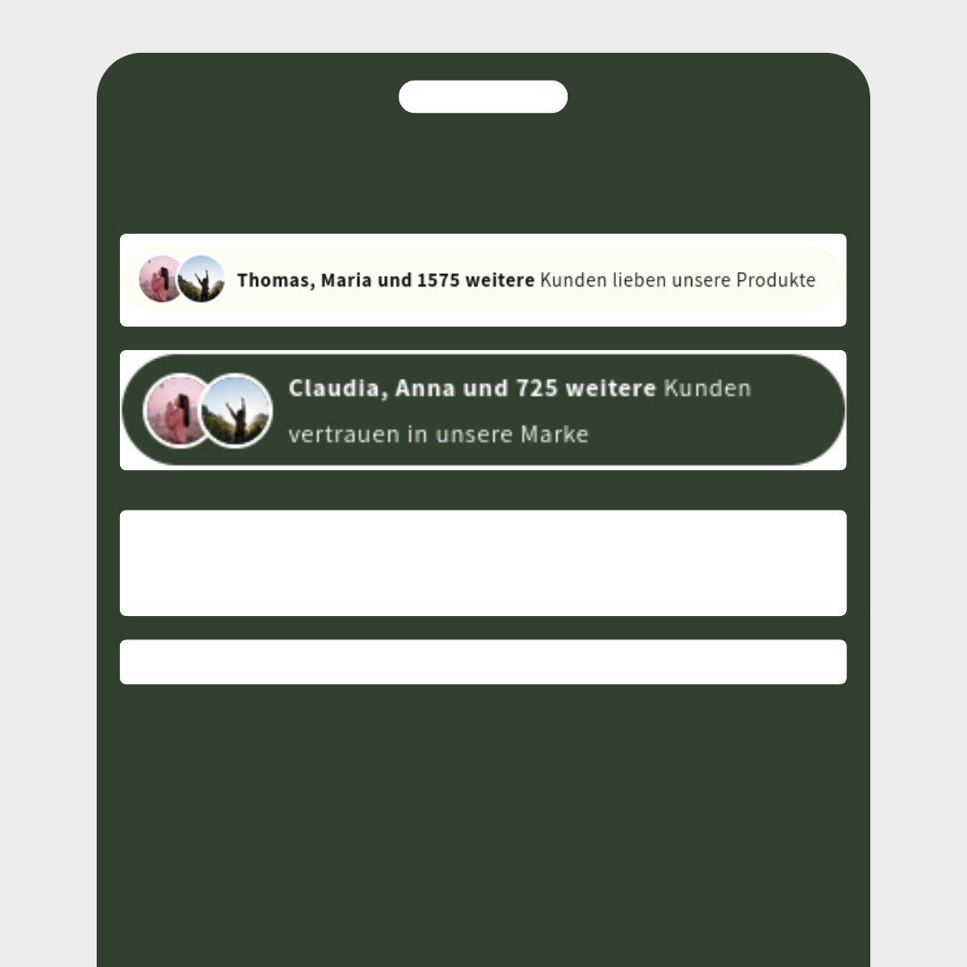 Ob als kleine Kunden-Avatare, Mini-Testimonial oder Badge – du zeigst auf sympathische Art, wie viele andere deine Marke oder dein Produkt bereits schätzen.